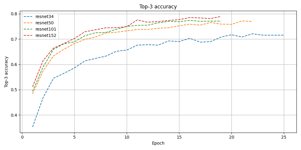 After creating the dataset, I decided to use a ResNet backbone for the classifier, trying out ResNet-34, ResNet-50, ResNet-101 and ResNet-152 to see what the differences in performance would be. Since the dataset images are 1600x900, I randomly crop a 448x448 patch from the image and resize it to 224x244 to feed it into the network. To find optimal learning rate, dropout rate, weight decay and scheduler settings, I used Optuna as an optimization library, early stopping a run when test loss does not decrease for three consecutive epochs.